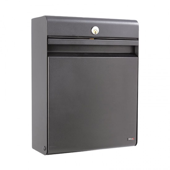 Een bijzondere brievenbus die is gemaakt van 2mm dik verzinkt (gegalvaniseerd) staal, waarna behandeld met een sterke antraciete poedercoating.
