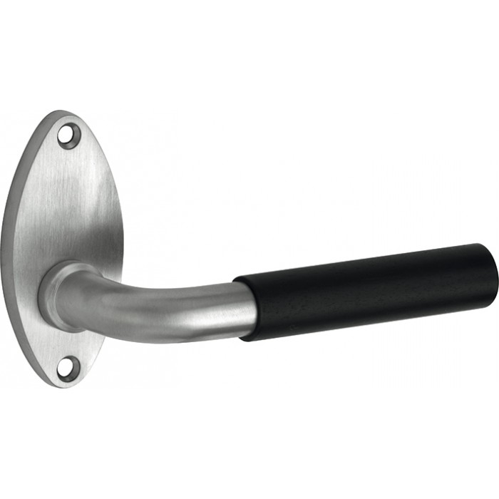 Deurkruk Frankfurt op ellips rozet ebben messing mat nikkel ongelakt