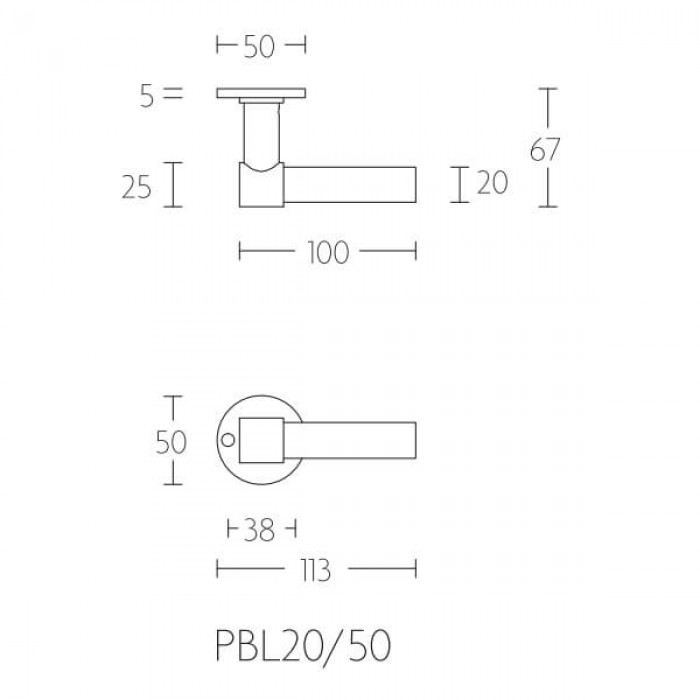 Deurkruk Piet Boon ONE PBL20/50 (enkel) mat RVS.