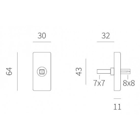 Het ovale rozet bevat de standaard montage afstand van 43mm en een 7mm stift met 32mm lengte aan de achterzijde.