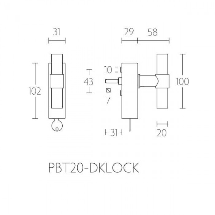 Draaikiepgarnituur Piet Boon afsluitbaar PBT20-DKLOCK mat RVS.