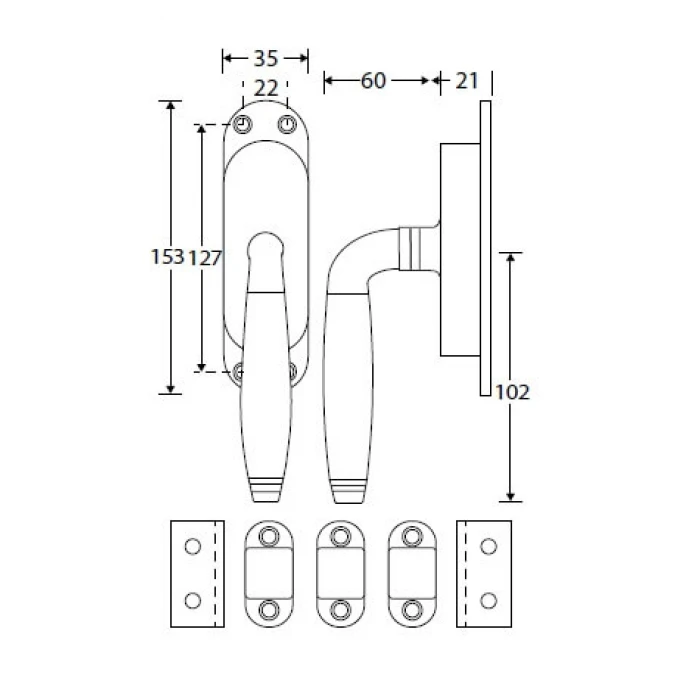 Voor een naar binnendraaiende deur of raam zijn 2 extra geleidezadels nodig, waar een meerprijs voor geldt.