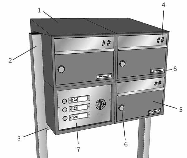 Wenst u brievenbussen op een statief ook in de breedte uit te breiden met meerdere kolommen is dat mogelijk. Met de onderbalk kun je tot een maximale breedte van 6 kolommen gaan. Ook is het mogelijk de post of briefkasten te voorzien van huisnummers in vinyl..