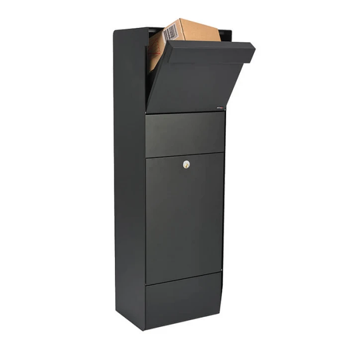 Deze solide pakket-en brievenbus is gemaakt van gegalvaniseerd staal, waarna behandeld met een sterke zwarte poedercoating.