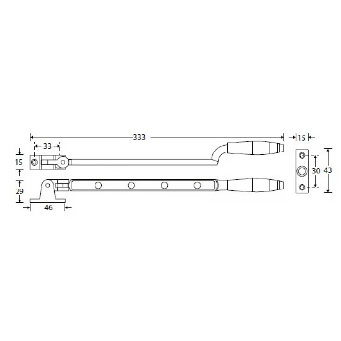 Afmeting 325 x 47 mm. Uitvoering met bubingahout.
