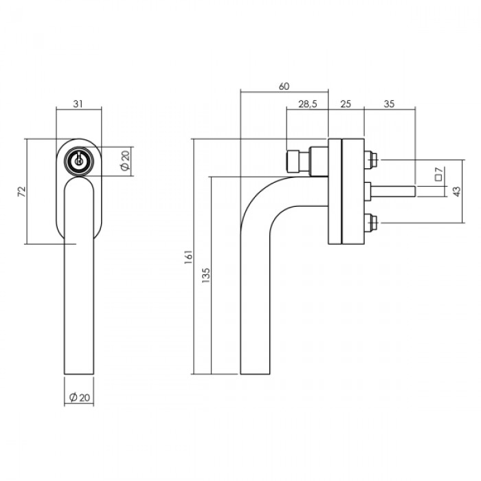 SKG** afsluitbare raamkruk recht draaikiep RVS