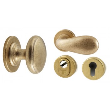 Veiligheidsset Kira met knop Basel en kruk Silvia messing getrommeld