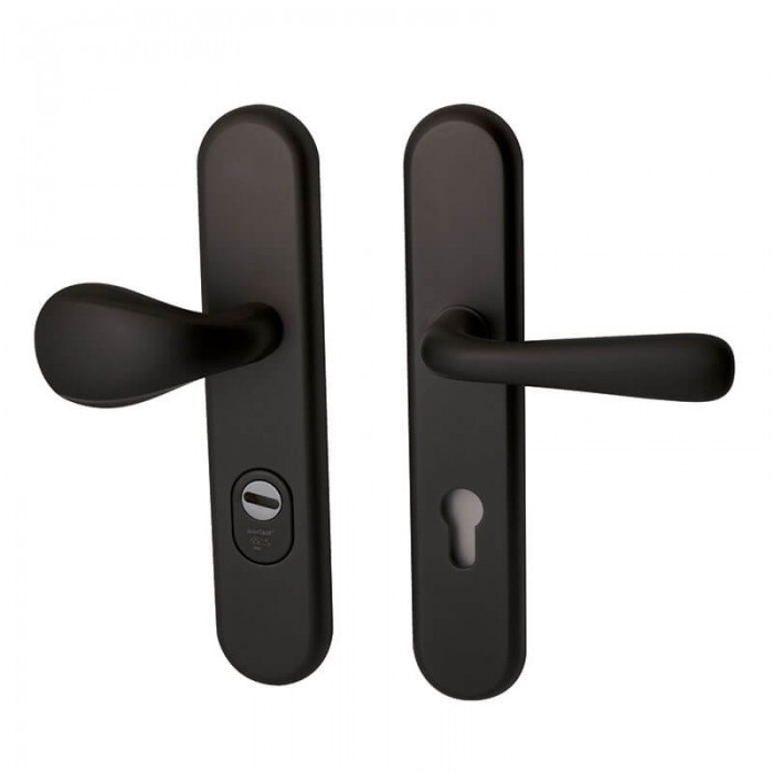Veiligheidsset Kira met vast knop Golf en deurkruk Silvia uitgevoerd in Puurzwart.