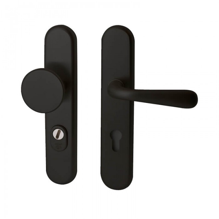 Veiligheidsset Kira met vast knop Basel en deurkruk Silvia uitgevoerd in Puurzwart
