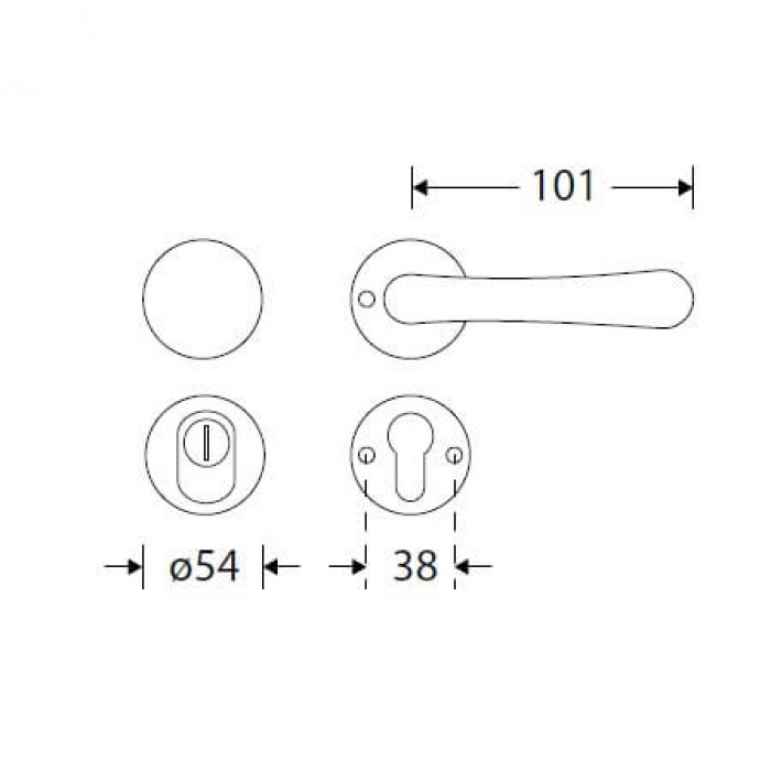 Wordt geleverd met alle bevestigingsmaterialen voor deuren van 40mm en 54mm.
